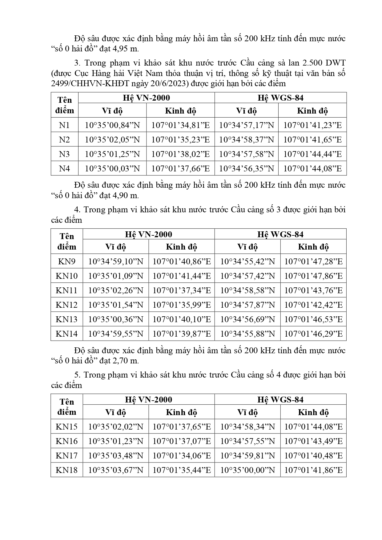 THÔNG BÁO HÀNG HẢI VỀ THÔNG SỐ KỸ THUẬT CÁC ĐOẠN CẠN CỦA LUỒNG HÀNG HẢI VŨNG TÀU - THỊ VẢI (09/07/2025)