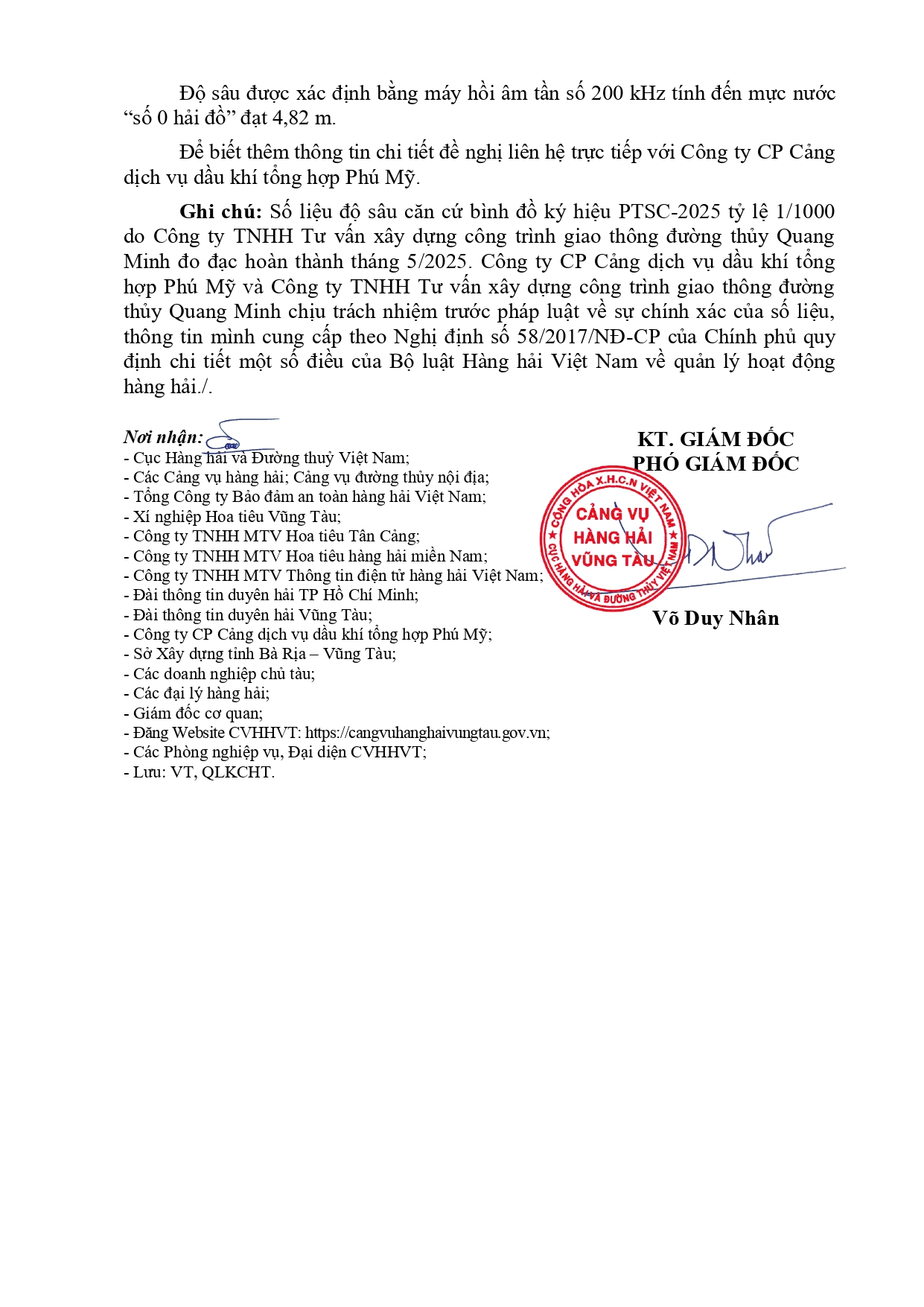 THÔNG BÁO HÀNG HẢI VỀ THÔNG SỐ KỸ THUẬT VÙNG NƯỚC TRƯỚC CẦU CẢNG DẦU NHÀ MÁY ĐIỆN PHÚ MỸ 2.1 (01/07/2025)